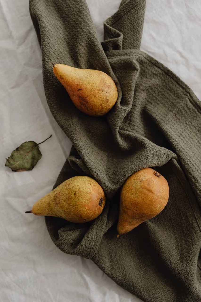 La poire est douce et juteuse, parfaite pour les enfants. Attention aux poires trop mûres qui coulent : préférez-les légèrement fermes pour l'école. Les poires pochées au sirop avec de la vanille sont élégantes et moelleuses. Faites des tartines de poire écrasée avec du fromage frais. Les quartiers de poire avec du chocolat fondu pour tremper sont un dessert simple. En compote avec de la cannelle, c'est onctueux. Les poires rôties au four avec un peu de miel sont caramélisées. Créez des hérissons : demi-poire + cure-dents + raisins secs. Les poires séchées sont des bonbons naturels. Racontez l'histoire des poires Belle-Hélène avec glace vanille et chocolat chaud.